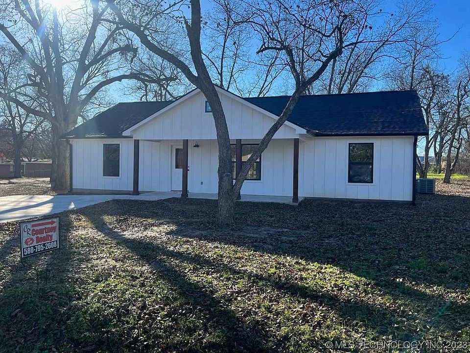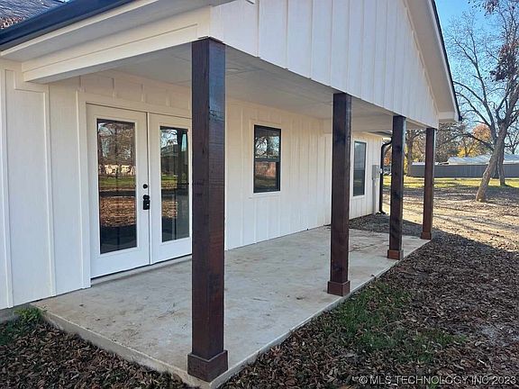 Outside, indulge in the beauty of a wood-column accented front porch, where French doors welcome you in with style. Whether you're sipping morning coffee or enjoying an evening breeze, the covered back porch provides the perfect retreat. A new concrete driveway and a sizable yard, adorned with mature trees, including tasty pecans, complete the exterior charm. And let's talk location—it doesn't get better than the heart of Tishomingo. Experience small-town living at its finest, with attractions like Blake Shelton's Ole Red, Pennington Creek, and the National Wildlife Refuge just a short drive away.