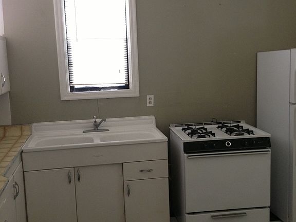 Bright and spacious unit available in a historic former schoolhouse-turned-complex, circa 1873. This first-floor apartment takes up the south wing of this building, and offers a lot of vintage charm.Living room is quite large, has 9 foot ceilings, and could easily fit a dining table. A good-sized kitchen is partitioned off of the living room, and has LOTS of cabinets and counter space, an over-sized basin, gas range,