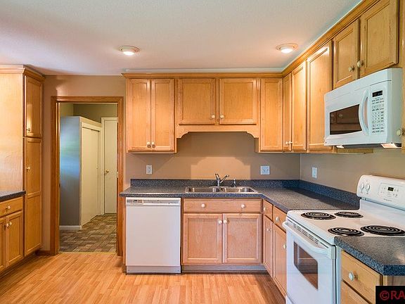 Start packing! This modern 2BR home with oversized double attached garage is completely turn-key & ready for immediate possession! Offering excellent curb appeal & everything you need on 1-level...this inviting home features a beautifully remodeled open kitchen & dining area with generous cabinetry, pull-outs, newer appliances, lazy suzan & a handy pantry. There is also a spacious living room with bow window & cozy wood burning fireplace, 2 spacious bedrooms, an updated full bath & the laundry/mudroom with handy utility sink & bonus 2nd shower. The newer dining room slider leads you to the grilling patio where you can relax in your spacious fenced backyard with nice shade trees & beautiful landscaping. Plenty of room for vehicle parking in the oversized 2-stall garage which also offers the basement access...perfect for your catch-all storage needs & peace of mind storm shelter. The inside & out numerous updates include: shingles '16, gutters w/ helmet, vinyl siding, updated vinyl windows & patio door, remodeled kitchen & full bath, updated water heater & softener, new interior paint & carpet, updated trim, doors, fixtures and even a newer sidewalk & street out front! Bonus Feature = No need to worry about the constant fluctuation of gas prices...this all electric home offers warm baseboard & radiant heat plus a supplemental wood burning fireplace removing the chill in those winter months yet maintains the cool comfort of central air conditioning during those hot summer days! Priced to sell...Great location across from the school & park...You don't want to let this one get away!