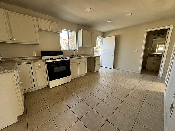 This 4-bedroom, 2-bathroom home boasts stylish tile flooring throughout, providing a clean, modern look that is easy to maintain. Outside, the large front yard offers plenty of room for parking and outdoor activities.