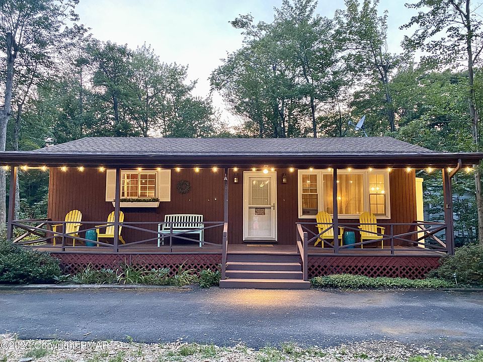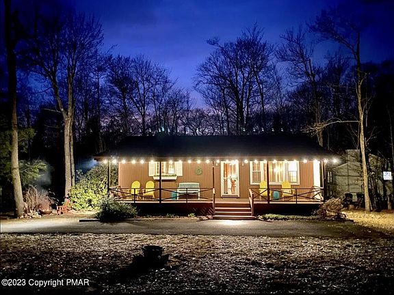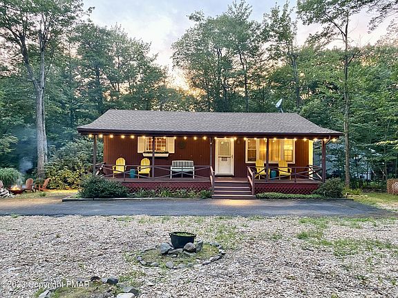 Nestled in the heart of the stunning Pocono Mountains, this charming cabin is the epitome of cozy living. Whether you're searching for your first home, a tranquil vacation retreat, or a lucrative short-term rental opportunity, this property has it all.Step inside to discover a spacious living room with vaulted ceilings, creating an open and inviting atmosphere. Stay warm and toasty during those chilly evenings with the convenience of a propane fireplace, perfect for creating memories with family and friends. ''Square Footage is based on public Records'' Imagine sipping your morning coffee or enjoying a barbecue with loved ones on your private deck, accessed through sliders from the dining room. It's the ideal spot to soak in the beautiful natural surroundings.