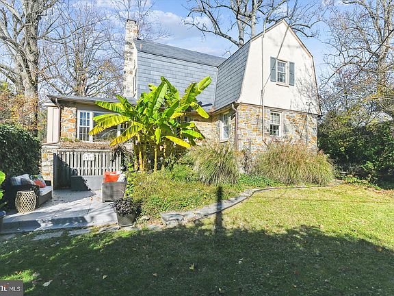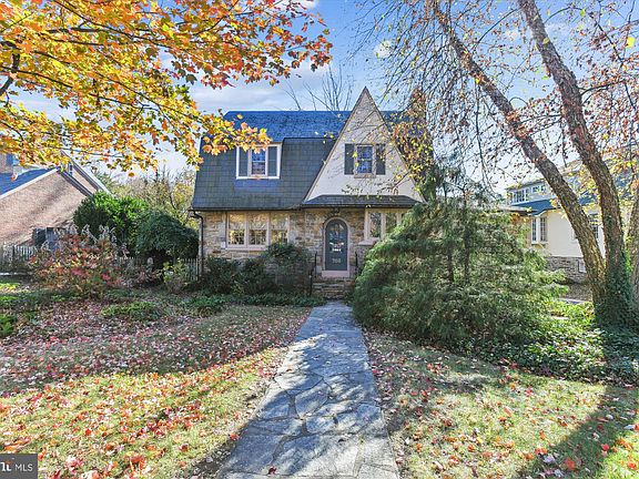 Turn off the bustle of York Rd. into the tree-lined streets of the historic Stoneleigh Community and arrive at 703 Stoneleigh Rd. At first sight you will be captivated by the original details of this home. The home was built in 1926 and is constructed of stone and stucco with a Dutch Colonial Roof line which features stucco clad dormers and a slate roof (replaced with new slate in 2012) and a stone chimney. This home has been thoughtfully renovated and maintained meticulously throughout with an eye toward its historic designation in this historic neighborhood. Step through the arched entry door into the light filled formal living room which features a vent free gas fireplace with marble surround and hearth and a beautiful mantle with upgraded moldings. There is an arched nook with leaded glass windows and a bench seat (which has storage).  The beautiful hardwood floors with inlay are original to the home and are found throughout the main and upper level. The formal dining room features crown molding, chair rail, two built-in corner cabinets and a bank of three cased windows which provide abundant natural light. As you pass through the back hall on your way to the kitchen you will find a conveniently located half bath with cherry vanity and cabinet. The kitchen features custom inset cherry cabinetry with crown molding, stainless steel appliances, double wall ovens, gas cook top, Sub Zero refrigerator, granite counters and tiled back splash. There is a window over the sink which faces south and overlooks the back yard. The ceramic tiled flooring extends into the back hall with exit to the covered side porch which leads to the back yard. The main level also has a large sunroom with a cozy gas stove, slate flooring and custom built-ins. All of the radiators in the home have custom covers. The staircase to the upper level has a beautiful Georgian styled curved railing and landing with a window. The upper level has three bedrooms and one full bath. There is a large hall closet. The primary bedroom has crown molding. Bedroom two features a built-in desk. The bathroom has a granite topped cherry vanity with an adjoining storage cabinet. There is very useful shelving tucked into the wall behind the shower/ tub as well. The lower level features a carpeted rec room with built-in shelves, a laundry room with custom cabinetry, a large island for folding and storage, and a utility sink. There is a full bathroom with a stall shower. There is a large unfinished utility room with storage shelves and an additional work room with workbench, storage shelves and walkout to the driveway. The basement has a French drain system with two sumps pumps (one with battery backup). Last but not least the yard and gardens are thoughtfully planted with beautiful mature trees and shrubs, stone walkways and patio with gazebo which is covered with climbing hydrangea. There is an additional paved patio with a small pond. There is a driveway and a concrete parking pad which provide ample parking. Dates of systems: new slate roof 2012, shingle roof on sunroom 2020, water and sewer lines replaced early 2000’s, boiler 2021, parking pad added and sidewalk replaced 2020, most kitchen appliances 2014, water heater 2004.