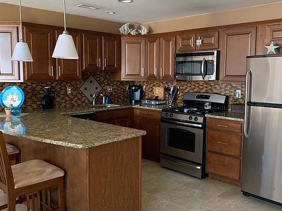 Welcome to 703 Surf Av Unit 200. Step into this updated and well maintained 3 bedroom, 2 bath condo just steps from the gorgeous North Wildwood beaches. The original owners have lovingly maintained, upgraded and never rented this unit. Upon entering the top floor condo you will walk into an open concept living room and kitchen featuring all stainless appliances with granite countertops and glass tile backsplash. Tile floors enhance the space and invite you out to the private deck which offers views of the surf avenue beaches. Two bathrooms have been recently upgraded with new vanities, tile, wains coat and crown molding. New luxury vinyl floors in all bedrooms. Plantation shutters add to the character. Excellent condo association is well managed and just completed exterior upgrades to high end Hardie concrete composite siding. Conveniently located to the beach, sea wall, dining and entertainment all within walking distance.