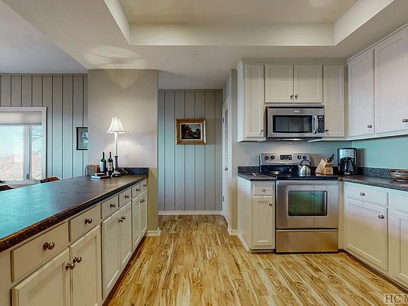 Amazing long-range mountain views from this beautifully furnished 3BR/2BA condo in the gated community of VZ TOP high above downtown Highlands! Stunning sunsets as you gaze over the Nantahala National Forest into Georgia and South Carolina from the expansive covered rear deck, literally above the trees! This is the top unit with no one above you! It is perfectly situated for exceptional views, and peace and quiet. Much cooler temperatures at this elevation! The unit has plenty of space for entertaining with an open floor plan from the large kitchen and pantry that are open to the dining and living rooms, to the rear deck. In addition to the dining table, there's plenty of extra seating at the breakfast bar. The kitchen is equipped with modern appliances, plenty of prep space, and an abundance of cabinets for extra storage. The living room has a wood-burning stone fireplace complete with a walnut mantle. All three bedrooms have exceptional views! There's also a large laundry room in the unit and a storage closet on the front porch. The front porch also has ample space for you to spend hours reading or just relaxing outdoors. Close to downtown Highlands with easy access to fine dining, great shopping, and many wonderful events.