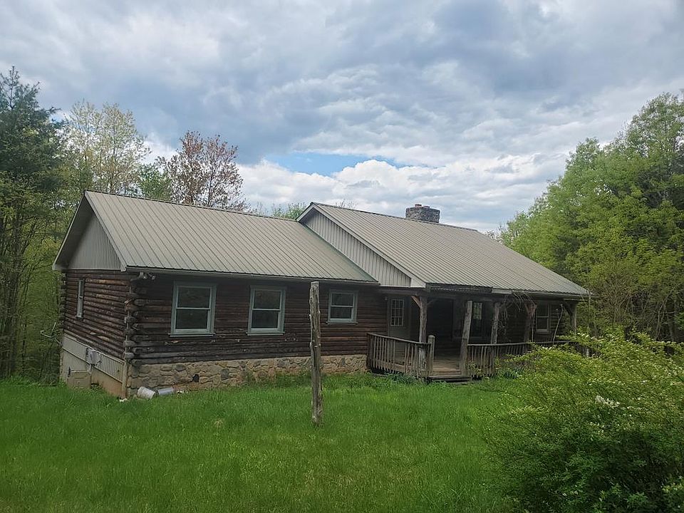 Recently media blasted and stained log cabin New lifetime guaranteed metal roof, new plumbing throughout. New Lennox HVAC and new hot water heater. This large log cabin sits on a 65 acre property with beautiful hardwoods offering 4 wheeler trails, hunting grounds and tranquility. Featuring 3 bedrooms and 3 baths, there is plenty of space in the full basement area for expansion. Beautiful tiled floors and fully remodeled kitchen makes this log cabin a must see.