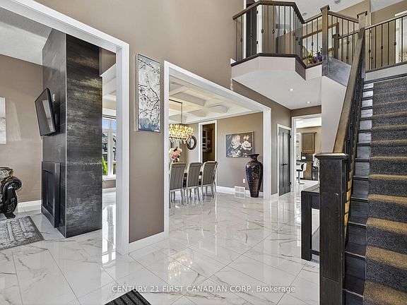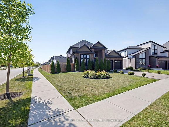 This stunning custom home by Saratoga Homes, an Energy Star builder, is perfectly situated on a premium oversized corner lot in one of North Londons most desirable neighbourhoods, Uplands North. Featuring 18-foot ceilings in the foyer, connected to a den with 11-foot ceilings and a double-sided fireplace, which seamlessly connects to the dining area with a coffered ceiling, enhancing the elegant flow of the impressive 2,976-square-foot living space above grade. The rest of the main floor has 9-foot ceilings and high-gloss white tile flooring, designer lighting, and is beautifully appointed with imported quartz countertops and high-end stainless steel appliances. A separate mudroom and butler pantry add to the practicality of this home. Upstairs, you have four generously sized bedrooms, with the primary bedroom featuring an ensuite and walk-in closet. The finished basement offers 1,488 square feet of additional space with two additional bedrooms, a gym, a second kitchen, a full washroom, and a sophisticated home theater complete with premium sound and projector setup. Outside, the fully fenced and meticulously landscaped yard features a charming gazebo, ideal for entertaining family and friends. Just minutes from Masonville Mall and local amenities, this home perfectly balances luxurious upgrades with practical living in a sought-after community.
