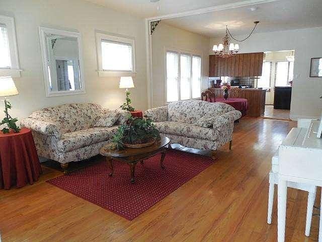 What a charmer! Freshly painted throughout, enclosed front porch, newer vinyl windows, original hardwood floors in nice size living room & dining room. Kitchen includes island, ceramic tile floor & appliances. Private master bedroom in upper with 2 walk in closets, 8 x 8 sitting area, & ceramic tile floor in full bath w/shower. 2 bedrooms on main with carpeting, full basement, window blinds in most rooms & central air. Fenced in yard w/garden shed & detached 2 car garage. Includes 1 Year Home Warranty.