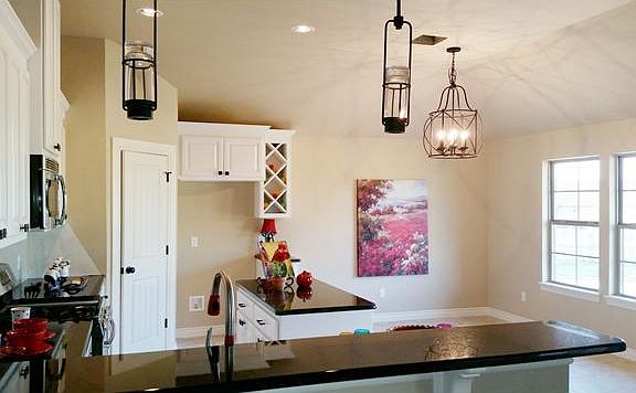 Great new floor plan has large open kitchen and dining with 10 ft ceilings. Vaulted ceiling in master. Corner fireplace in large living. Stainless appliances including refrigerator! Island, wine rack, pantry and 3 cm granite in kitchen. Wall of linen cabinets. 2" blinds thru out. Covered patio on front and back of home! Oversized corner lot. Neighborhood pool coming! All located in the Heart of the City!