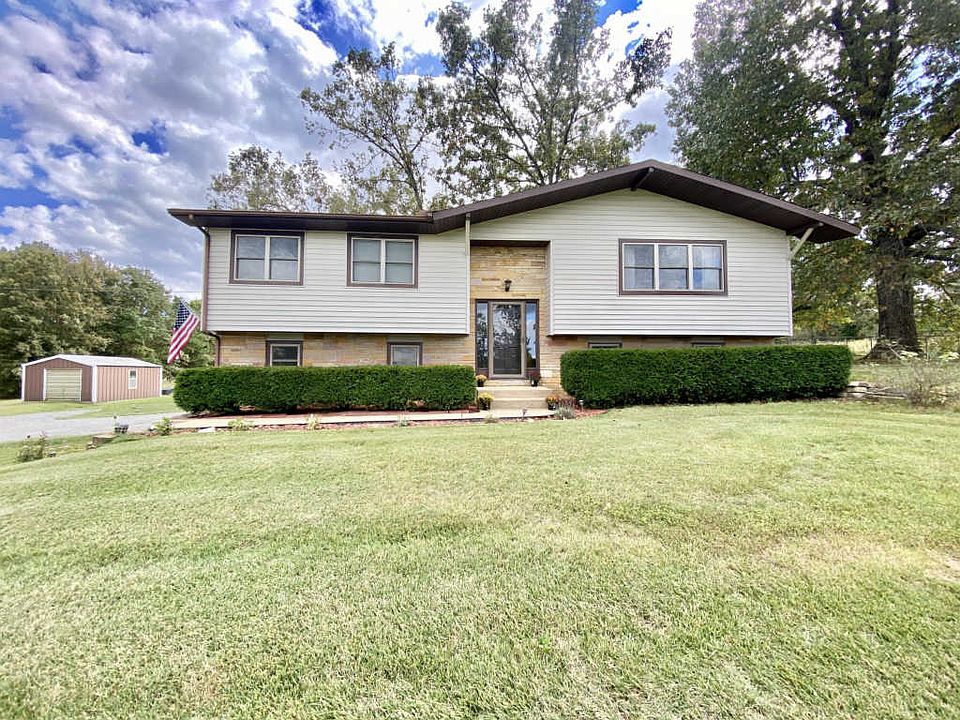 Clean, cute, and move in ready! This 4 bed 3 full bath home is located on a paved county road and sits in the middle of just under 5 acres. Upstairs you will find, kitchen, living, 3 bedrooms with 2 full bathrooms. Downstairs is two car garage with master suite and laundry. Out the double doors off the dinning area is a nice deck and fenced yard and just under 4 fenced acres for livestock. Howell Vally School District.