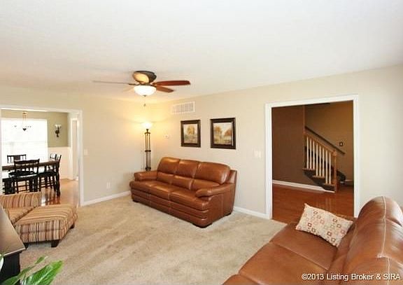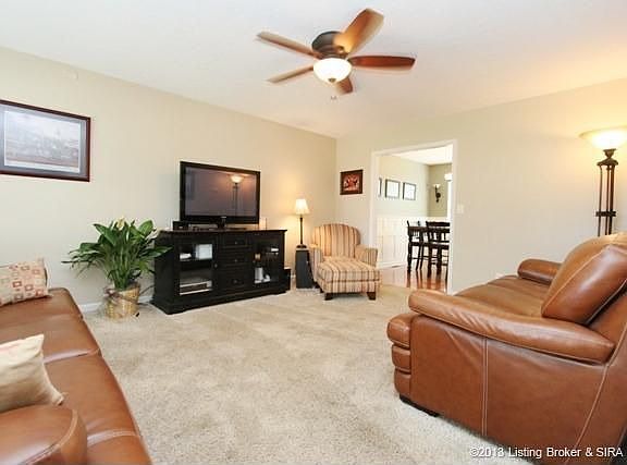 100% FINANCING THRU USDA. BIG HOUSE! Need space? This very nice 4BR/2 full and 2 half bath home features over 2500SF of living space. All bedrooms on the second level including master suite with BIG walk-in closet. Main level features living room, formal dining room, half bath and modern/tastefully decorated kitchen with doorway leading to nice, spacious deck AND patio area overlooking fully fenced, semi-private backyard with woods behind. Downstairs you'll find large family room with half bath and additional unfinished area for storage. Two car attached garage, double driveway/basketball court and covered long covered front porch accented with beautifully landscaped front give warm invitation to this home located in Silver Creek school district with VERY EASY access to all the shopping you want and I65. Seller paying for 1YR home warranty at closing.
