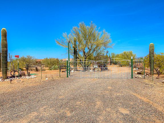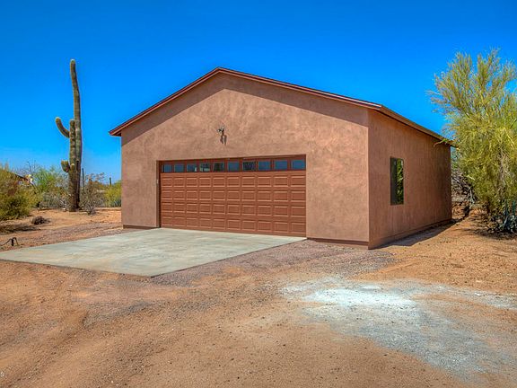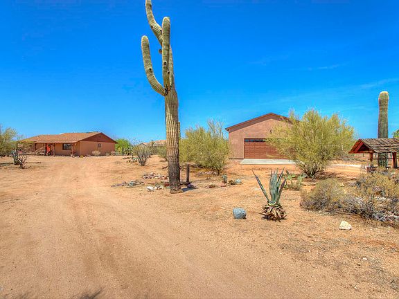 Oh my! This is a find! Amazing opportunity for a ''Cowboy Chic'' house on a quiet 2.5+ acre lot in the heart of the North Scottsdale desert. Peace and quiet are the name of the game here: you can hear the horses trot by and the birds sing in the morning. The house is adorable and well cared for: 2 bed, 2 bath and a large open kitchen. Brand new 4 car or RV garage positioned perfect on the lot for any future development. Flat lot with horse stalls, large work shed and fully fenced property. You can live here and love it, or build a new masterpiece. A true opportunity!
