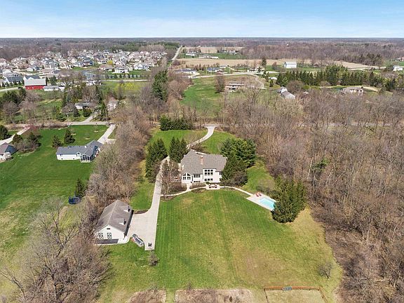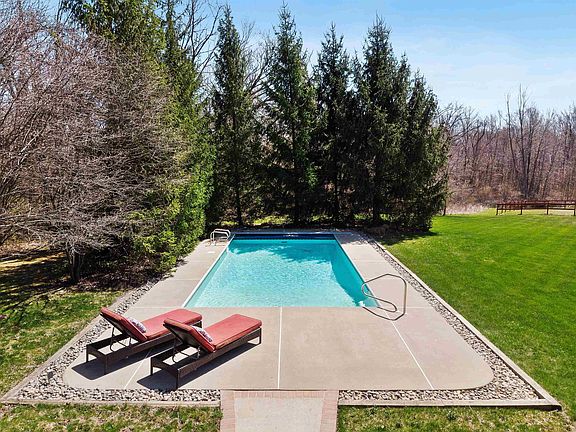 Custom built home on a 7.9 acre serene piece of property, lined with trees featuring your own private walking trails to the winding creek behind. This home features an abundance of windows to let the sun pour in while you enjoy watching the seasons change and deer and turkey venture. The two-story foyer welcomes you with a private study to your left and formal dining to your right. Large main floor master bedroom features ensuite with his and her walk-in closets, large tub and separate shower and not to mention, a fantastic view. Enjoy the flow of the kitchen with an abundance of Grabill cabinets and counter space, hearth room with fireplace surrounded with built-ins, eat-in dining area lined with windows to the sunroom with access to the deck, it is a sure gathering spot. The upper-level features two generously sized bedrooms each with their own ensuite and walk-in closets. The walk out lower level is another great spot for entertaining, indoors or out, with a wet bar, two-way fireplace and easy access to the full bath for those beautiful pool party days! Two additional rooms to use at your pleasure, exercise or craft/hobby rooms round out the finished living space and don’t miss the extensive storage room with stairs leading up to the garage for added convenience. And that’s just the home, now to the outside! Detached 50x30 garage features plenty of space for your toys, 3 horse stalls (with ability to be removed) and loft for additional storage. Stunning 32x16 saltwater pool with plenty of surrounding lounging space down to the patio off the back of the home. The view is ever changing with the 3 acres of woods, trails, creeks and the lovely paddock. All of this just minutes from Parkview Hospital, I69/Dupont Rd, Metea Park, Leo schools and so much more.