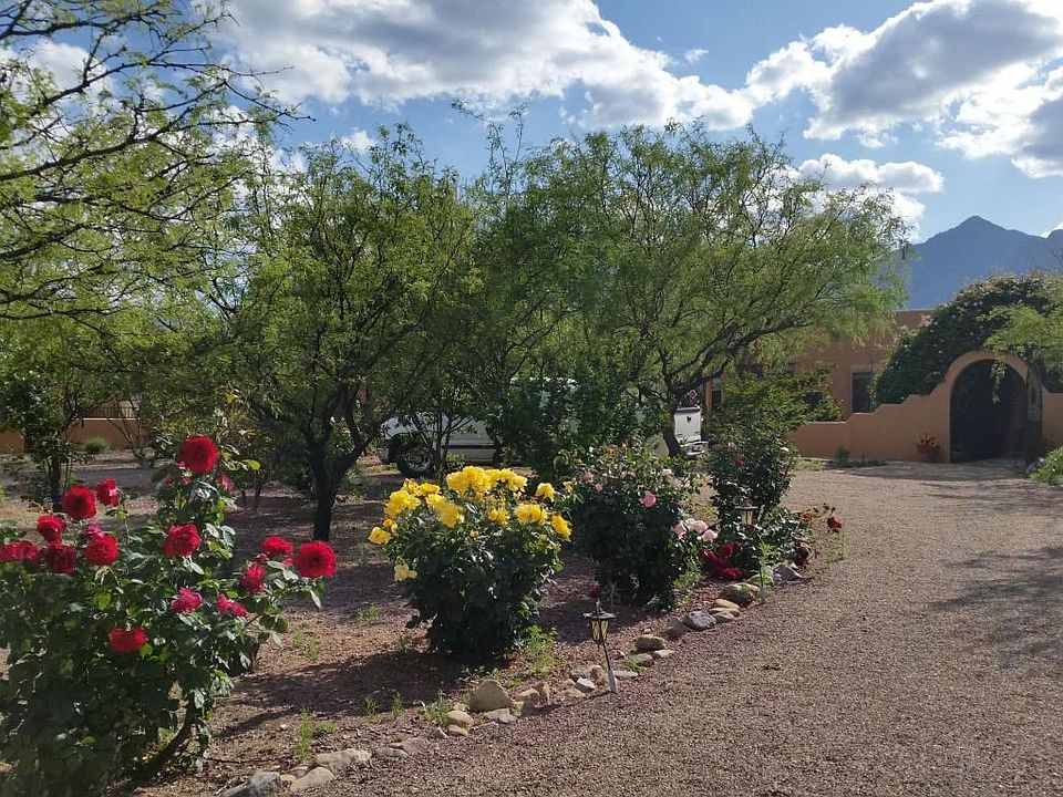 For more information on this property, contact the Listing Agent, Barbara Pursell at (520) 439-3951 or barbarap@LongRealty.com. In One word, ''Breathtaking'', Beautiful spacious home has everything. 3 bedroom, 2 bath, ''Designer'' front and back landscaping starting with Wisteria covered trellis to large ceramic tiled entry foyer, winding flagstone pathways inside low stucco fence,Extra Large modern kitchen opens to Great room w/fireplace surrounded with 4 multiple large bay windows. Dog run, private covered front and back patios. one acre located On paved road with electric swinging front entry gate. A pleasure to walk thru and view. Hurry, this is a custom build!
