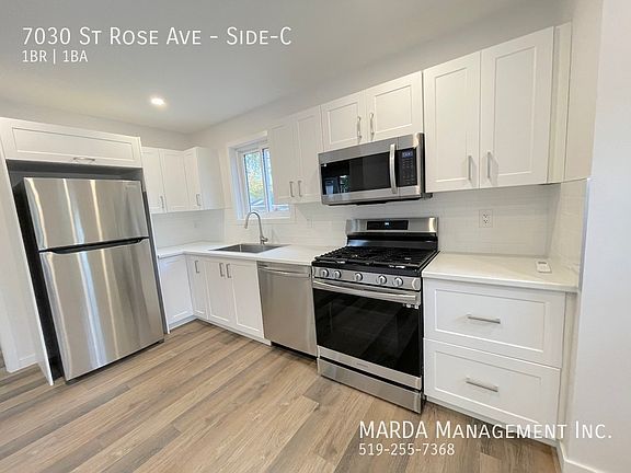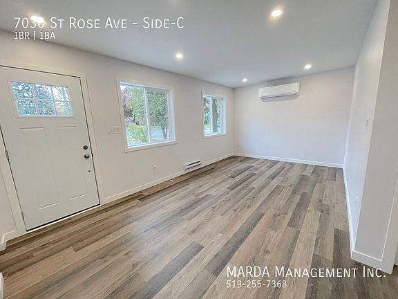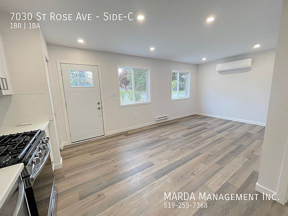 Welcome to Unit C at 7030 St. Rose, a stunning newly built standalone unit offering modern comfort and exceptional convenience in Windsor's desirable East Riverside neighbourhood. This beautifully designed one-bedroom, one-bathroom home features brand new vinyl flooring, recessed lighting, and an open-concept living and dining area flooded with natural light from large front windows. The high-end kitchen boasts stainless steel appliances, quartz countertops, and ample cabinetry, perfect for everyday cooking and entertaining. The spacious bedroom includes a large closet with sliding mirrored doors, while the modern bathroom features a stylish vanity, a standing shower/tub combo, and elegant finishes throughout. Enjoy the added comfort of a mini-split A/C and heating system, supplementary baseboard heat, and in-suite stackable washer/dryer. Additional perks include a Blink doorbell camera, shared parking, and a prime location near Metro Supermarket, local shops, schools, and more. Tenants are responsible for water, gas, and hydro, as well as lawn care and snow removal. First and last month's rent and a credit check are required. One-year lease minimum. Professionally managed by MARDA Management, offering 24/7 maintenance support and easy rent payment options. Don't miss your chance to be the first to live in this exceptional new unit. Freshly Painted Laminate Flooring New Countertop Installed No Smoking Allowed Pet Friendly