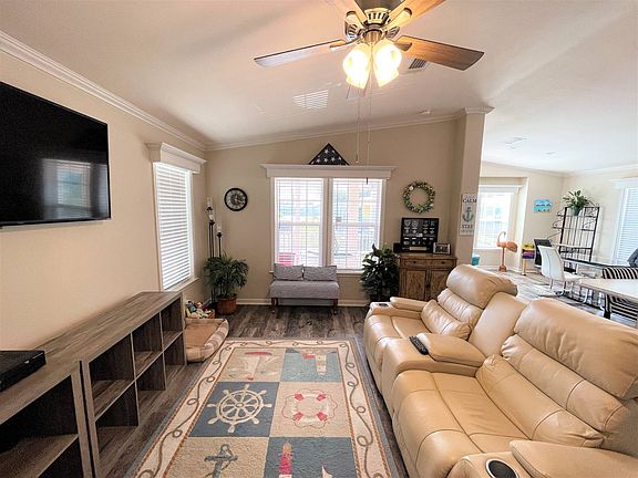 This is a stunning home, located in a smaller community of the oaks of Colony Cove. This how long is 2021, three bedrooms two baths. The front porch is screened with a beautiful stain on the deck floor, perfect for your morning coffee or your evening cocktail. As you enter the home you will notice the wide-open floor plan. Gorgeous kitchen large Island for all your friends and family together. Vaulted ceiling throughout the home, with laminate flooring and some carpet. Indoor laundry. This home has the back lanai screened as well and sits on a beautiful lot with a water view. A delightful place to enjoy all of the wildlife and the serenity. A paver patio perfect location for a grill and a few lounge chairs for that afternoon siesta. Lot rent $ 937.00 Named Best Retirement Community six years in a row by the Herald-Tribune of Bradenton, Colony Cove 55+ retirement mobile home community has a wealth of amenities designed to keep up with your active lifestyle. Located in beautiful Ellenton, FL, just inside the Sarasota/Bradenton metro area, the Colony Cove community features beautiful banquet rooms, nice billiard facilities, a private boat dock, and five spacious clubhouses. Great fishing opportunities, huge game rooms, and well-stocked libraries are also great diversions. Take a dip in one of our five heated swimming pools, or challenge your friends and neighbors to a friendly match on either the shuffleboard or tennis courts. Colony Cove also offers you on-site management, laundry facilities, a woodworking shop, two fitness centers, and a dog park to make your active lifestyle more enjoyable. With local area dining options just minutes away and a wealth of nearby shopping opportunities such as The Ellenton Outlet Mall, you belong at Colony Cove. Come by today and let us help you become a member of this tranquil community. All listing information is deemed reliable but not guaranteed and should be independently verified through personal inspection by appropriate professionals. Integrity Mobile Home Sales cannot guarantee or warrant the accuracy of this information, measurements, or condition of any property. Measurements are approximate. Lot rent is subject to change.
