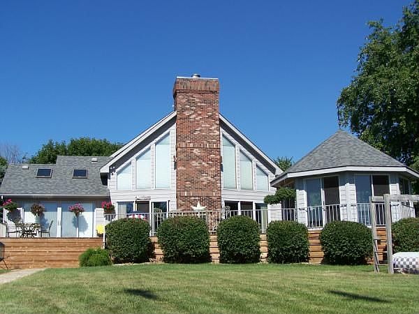 Great value on this waterfront property! Price $45,000 more or less below assessed value. Must see this beautiful 1.5 story, 3 bedroom (possibly 4th), 3 bath (1-full, 2-3/4) home with large family room, flat lot, great views of main basin. 2 car garage, all appliances, dock, and more.