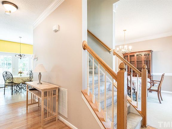 Location! Location! Location! Minutes from the RDU Airport. 3 bedrooms plus bonus could be 4th bedroom. New Roof 1 Year Ago, HVAC replace 2016, Front Porch, Entry Foyer, formal Dining Room, kitchen/Dining, microwave, refrigerator, washer and dryer, French doors, Gas log Fireplace, Play equipment, storage shed, oversized deck, laundry room has new rolling barn door.