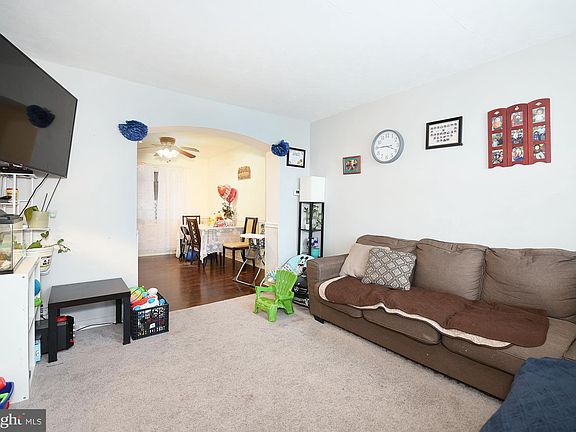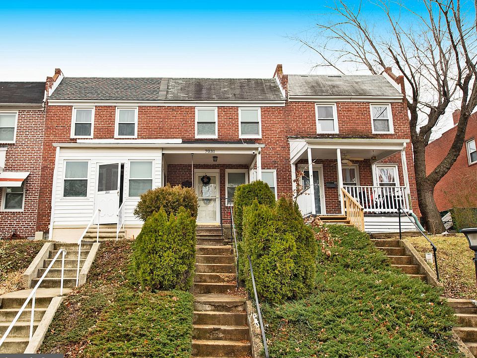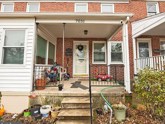 Endless opportunities await within this 2 bedroom 1.5 bath brick covered porch front home in Eastwood! Enter into living room featuring carpet and natural light from large front facing windows. Arched throughway leads to a separate dining room featuring hardwood floors, ceiling fan, chair rail. Kitchen off of dining room situated in the rear of the home offers oak cabinets, neutral countertops, and a stainless steel stove and dishwasher. Doorway exits to am enclosed rear porch and out to a fully fenced yard. The upper level offers 2 generously sized bedrooms featuring hardwood floors and nice closet space. Full hall bath includes a tub/shower combo. A partially finished basement offers a 3rd bedroom option and a half bath with pedestal sink as well as unfinished space for storage and utilities. Shed exists for outdoor storage needs and a gate exits to an alley in the rear. Hurry up and take advantage of the extreme value in this brick home in Baltimore County!