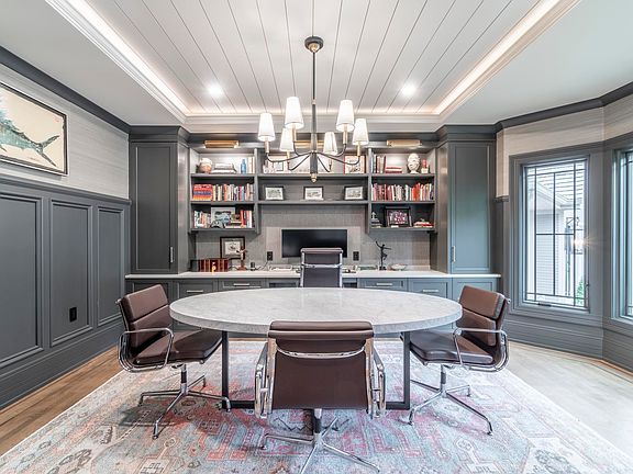 Step into a designer's dream, where every detail has been meticulously crafted to perfection! This stunningly renovated 3-bedroom Covington Bluff’s home in the sought-after Homestead Schools district is a true masterpiece of modern living reflecting the vision of renowned local designer, Frank Souder. As you open the door, you're welcomed by a grand foyer with soaring ceilings & a timeless chevron-patterned hardwood floor. Wainscoting, sunlight, elegant lighting fixtures, & craftsman finishes envelope you with unparalleled luxury! Just off the foyer behind custom glass French doors, a breathtaking office space awaits, exquisite built-ins, & an ambiance that's perfect for productivity whether you're working from home or planning your first party in your new home. Venture towards the living room, surrounded by oversized windows & centered around a floor-to-ceiling fireplace where you will no doubt gather around with loved ones in the days ahead for occasions big & small. Settled at the heart of this home is the kitchen - a culinary dream, boasting a stunning waterfall island, top-of-the-line appliances, & Dutch Made luxury cabinets seamlessly integrated with a custom sub-zero fridge. A chic dry bar, complete with a mirrored backsplash, suspended shelving, plus a built-in wine & mini fridge, will be the highlight of weekend get-togethers, while the pantry will make the hustle and bustle of everyday effortless with a built-in coffee bar. At the end of the day, you can wander to the primary suite. Cathedral ceilings, rich wood beams, a cozy fireplace, & dual closets with custom cabinetry make waking up every day an experience while the en-suite bathroom is a spa-like retreat with tiled floors, dual vanities, & a walk-in ceramic tiled steam shower - what more could you ask for? The walk-out basement is equally impressive, with two additional bedrooms, a fireplace, a rec/workout room, & another wet bar, all leading out to a brand-new patio. Here, you'll find a built-in dog grass turf area designed with your furry friend in mind! Further outdoor entertaining space can be found on the Trex deck off the dining room. It is maintenance-free and features two natural gas lines to hook up a grill & fire pit. Beyond the home, this prestigious community offers maintenance-free living, with well-maintained shaded walking paths, a serene pond, & easy access to schools, restaurants, I-69, & downtown. This isn't just a home; it's a lifestyle!