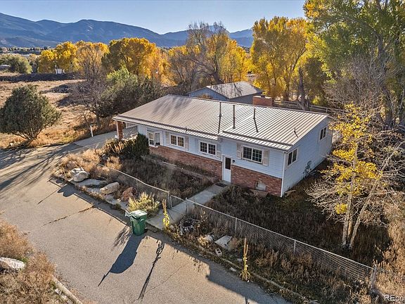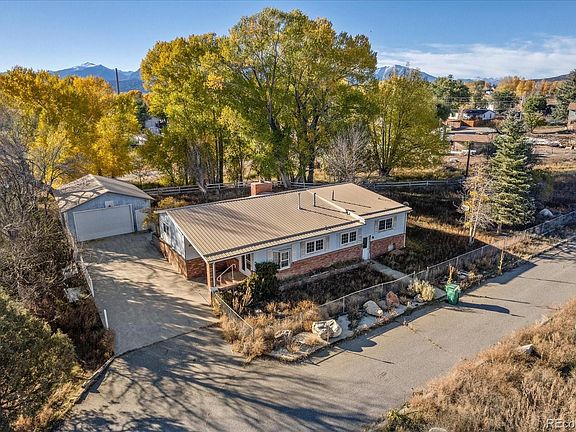 Almost four acres and close to downtown Salida! As you enter through the front door of this home, you’re welcomed by a cute kitchen and dining area. Here, you’ll find tile floors and a stylish island countertop, complemented by essential appliances including a refrigerator, washing machine, stove, and microwave, all thoughtfully designed with ample storage for your convenience. Enjoy the views out the windows of the neighboring pivot often scattered with munching mule deer and birds. A short staircase leads you up to the living area bathed in natural light from four big windows. On the right hand side of the kitchen you will find a secondary front door and possibly a laundry or mud room area. A set of a few stairs from the kitchen area takes you up to the full bathroom. The primary bedroom consists of one large window and one glassed double door leading to the patio. There is another bedroom upstairs with nice closet space and easy access from the hall. The basement area has a huge brock fireplace in the space that's ready to be a family room. Two more rooms downstairs could be used as an office or study room. Outside has a detached two car garage and a fenced in back yard. This property has a ton of potential with a domestic well and a level lot. It is located in a private, ideal spot near Salida with a little over three acres. If you're looking for a great investment and would like a tour, give us a call.