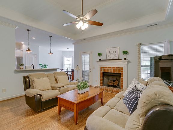 Beautiful open fl home on a premium lot backing to walking trail & woods, all 3 beds on the down & huge bonus room upstairs, 9Ft ceilings w tray ceiling & trim, finished & eng hardwoods throughout on the main, custom tile shower, 2 separate closets in master bed, full home air purifier, SS Appliances, fireplace w gas logs, extra storage space in garage, refrigerator remain, covered patio and fenced backyard is perfect for entertainment, you'll love this house!!!