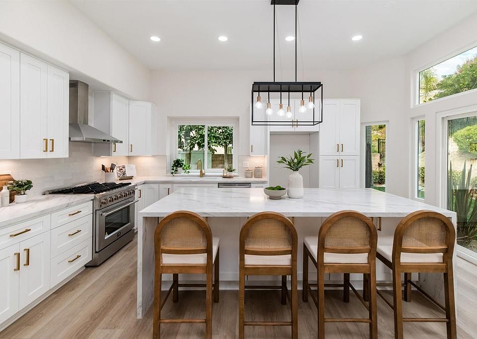 Exquisite Single-Story Retreat in Aviara’s Coveted Avocet Community! Nestled at the end of a serene cul-de-sac, this completely remodeled home exudes modern sophistication and timeless elegance. Thoughtfully designed with impeccable style and attention to detail, it features a highly desirable floor plan ideal for multigenerational living. Lives like a one story home with the primary suite and two guest bedrooms located on the main level, and a spacious ensuite bedroom privately situated upstairs. The location is arguably the single best lot in Avocet due to its prime position and expansive size. Set on an expansive pie-shaped lot with no rear neighbors and backing to a tranquil greenbelt, this may also be one of the best one-story lots in Aviara for this size home. This is the home you’ve been waiting for—an extraordinary property in one of Aviara’s most sought-after neighborhoods. It could be a decade before something this special becomes available again. From the moment you arrive, the home’s stunning curb appeal captivates with its meticulously landscaped grounds and a gated front porch entry that sets an inviting tone. Inside, each space has been thoughtfully curated to balance refined elegance with everyday comfort. Upscale finishes and modern upgrades include new high-end flooring, fresh interior paint, designer lighting, and sophisticated architectural details throughout. Natural light cascades through soaring two-story ceilings, expansive double-pane windows, and sleek sliding glass doors, illuminating the open-concept living spaces. An elegant fireplace serves as the centerpiece of the living room, creating a cozy yet stylish ambiance. Two sets of large sliding glass doors off the dining area and kitchen effortlessly connect the interior to the outdoor patio, extending the comforts of the home and creating an expansive space for alfresco living. The great room flows seamlessly into the gourmet kitchen, a true culinary masterpiece. Outfitted with brand-new white shaker cabinetry, quartz countertops, 6-burner gas range, and a striking waterfall-edge island with bar seating, this kitchen blends modern design with everyday functionality. The main-level primary suite is a serene retreat, featuring vaulted ceilings and a lavish spa-inspired ensuite. Indulge in dual vanities, a soaking tub, a walk-in shower, and an expansive walk-in closet. Two additional guest bedrooms, a full bath with dual sinks, and a well-appointed laundry room complete the main level. Upstairs, a second primary suite with an ensuite bath provides the perfect private space for guests or extended family members. Outdoors, the private backyard is a tranquil escape. Freshly updated landscaping creates a lush, serene environment, while multiple patio areas offer the perfect setting for outdoor dining, relaxation, and entertaining. Thoughtfully designed to blend beauty and functionality, this space invites you to savor the California lifestyle. Location is paramount, and this property’s setting is second to none. Just one block from the top-rated Aviara Oaks Elementary and Middle Schools, it’s an ideal residence for families seeking both luxury and convenience. The Avocet community offers access to scenic walking trails leading to the tranquil Batiquitos Lagoon, as well as exclusive owners’ greens fees at the world-renowned Aviara Golf Course. This exceptional home invites you to experience the perfect harmony of modern luxury, thoughtful design, and a premier location. It’s a true sanctuary where elegance meets comfort in the heart of Aviara’s most desirable community.