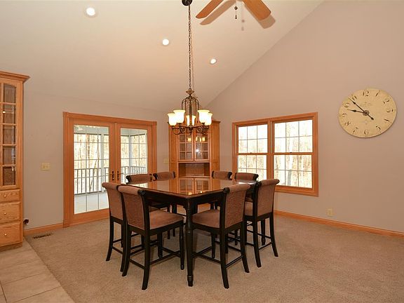 This beautiful home sits on nearly 7 acres of mostly wood land. When you enter this home you will notice the dramatic vaulted ceiling in the very open Great room and kitchen floor plan. The kitchen features custom cabinets and a unique island bar. The Master bedroom is located on the main level and offers two walk-in closets. The lower level is perfect for entertaining family and friends with the full kitchen and huge recreation room. This immaculate home also offers a separate detached garage which can hold four additional cars. Come see this one of a kind home and you'll be amazed by its tremendous value!