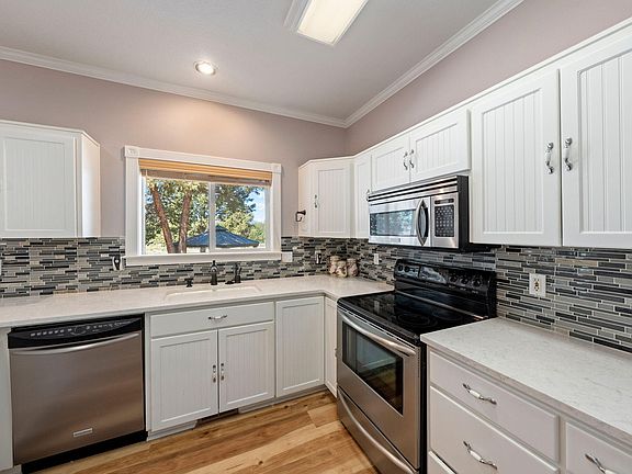 Welcome to 70325 Club Rd in delightful Sisters, Oregon. Nestled on 2.35 private acres, this property boasts breathtaking views of Mt. Jefferson and Black Butte. Step inside to explore stunning updates. The home features newly upgraded wood grain laminate flooring beautifully matched with elegant quartz kitchen countertops. With its fresh white cabinetry and a sparkling glass backsplash, the kitchen exudes a bright and inviting atmosphere. The primary bathroom offers a tranquil escape, with two new vanity sinks, a soaking tub, and stylish wood grain laminate flooring. Outdoors, enjoy a spacious patio and Trex deck, complete with a built-in BBQ, ideal for entertaining. A size-able shop provides exceptional storage and workspace, featuring an office perfect for crafts or business. Above the shop, a generous 1,200 sqft living area includes two bedrooms, a living room, and a kitchen, ideal for guests or additional living space. Home is sold partially furnished.