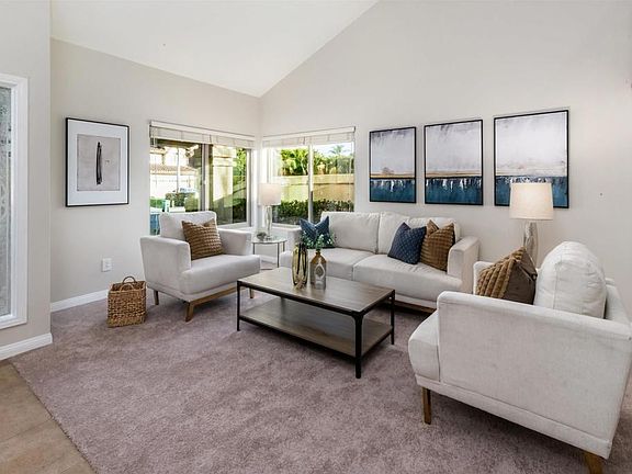 Nestled in the highly sought-after Vista Pacifica community, this home offers a peaceful retreat with peek-a-boo ocean views and easy access to Carlsbad’s finest amenities. Just a short walk or ride away, you’ll find the beach and the breathtaking Batiquitos Lagoon, with its expansive trails perfect for immersing yourself in nature. Situated within the prestigious Carlsbad Unified School District, the home also offers convenient proximity to vibrant downtown Carlsbad, scenic lagoons, world-class resorts, and the I-5 freeway, blending coastal charm with modern comfort. A picturesque walkway framed by lush landscaping leads you to the inviting covered porch of this beautifully refreshed home. Upon entering, you’ll be greeted by a freshly painted interior, plush new carpet, and modern lighting & hardware that enhance the home's stylish charm. High vaulted ceilings and large windows flood the living room with natural light, while the adjacent dining room captivates with a striking new chandelier. The home’s open-concept design flows effortlessly into a spacious family room and kitchen, thoughtfully crafted for effortless living and entertaining. The kitchen boasts granite countertops, SS appliances, and an extended breakfast nook perfect for casual dining. The adjoining family room, anchored by a charming brick fireplace, creates a welcoming ambiance perfect for relaxation. Large sliding glass doors effortlessly connect the interior to the outdoor patio, extending the comforts of the home and creating an expansive space for alfresco dining & entertaining. Whether enjoying a cozy evening by the fire or hosting guests, this seamless flow from indoors to outdoors enhances the home’s inviting atmosphere. Convenient main-level powder room with updated fixtures. Ascend to the upper level, where plush new carpet leads you through double doors into the serene primary suite, offering peek-a-boo ocean views. High vaulted ceilings with a stunning wood beam detail add to the sense of grandeur, while the ensuite bath boasts a spacious walk-in closet, dual sinks, upgraded fixtures, and modern lighting. This level features 3 additional bedrooms and full bath with a new sink & upgraded fixtures, providing plenty of space for family and guests. The private backyard is a peaceful retreat, enhanced by freshly updated landscaping and a variety of fruit trees. An expansive patio, complemented by a shaded pergola, provides the perfect space for outdoor dining and relaxation, blending beauty and function. Vista Pacifica offers a range of resort-style amenities, including a sparkling pool, relaxing spa, tennis courts, and optional RV and boat parking (subject to availability). Just nearby, the expansive 42-acre Poinsettia Park features pickleball and tennis courts, athletic fields, and scenic walking paths, providing endless opportunities for outdoor recreation.
