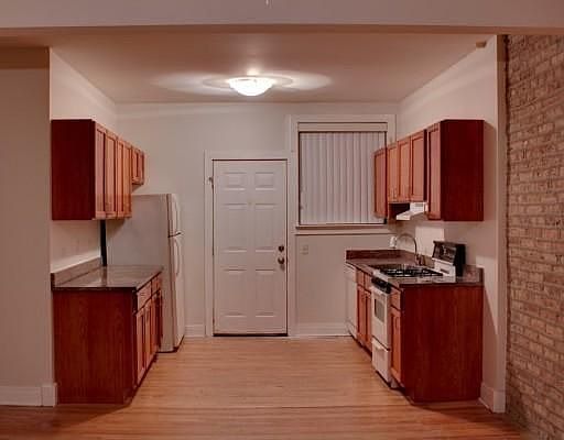 Charming condo with courtyard views and large kitchen. Steps from the beach. This 2BR/1BA condo is located in a gated courtyard building with on-site laundry. The unit is freshly painted and features exposed brick, hardwood floors, and bay windows with new blinds throughout. There is an entry foyer with built-in coat rack, and a hallway with built-in shelving. The large kitchen has stainless steel appliances and lots of cabinet storage and counter space. This condo is centrally located in East Rogers Park between Loyola and Northwestern Universities. Short walking distance to CTA, groceries, Loyola Beach/Park and Roger's Park social life. RENT INCLUDES: Heat, water, 2 window AC units, large basement storage, and access to bike room. Pet friendly building and neighborhood. Welcome to your sunny new beach apartment home.