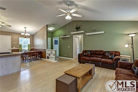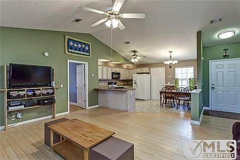 Lovely open floorplan house with 3 bedrooms, 2 baths, vaulted ceilings, hardwood floors, master suite with walk in closet, and fenced in yard with covered patio. Brokered And Advertised By: Avenue Real Estate Services Listing Agent: Brittney Testerman