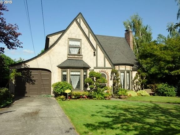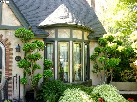 Storybook timbered English Tudor with a bay window and bow turret window. Charming home with spacious rooms. Hardwoods floors, French doors and Gumwood trim. Classic leaded glass windows in both living room and dining.Leaded glass built-ins in dining. Library/music room with main floor private patio deck. Main floor bonus room that was used as a master bedroom. Unfinished basement with daylight windows could be a fabulous space.
