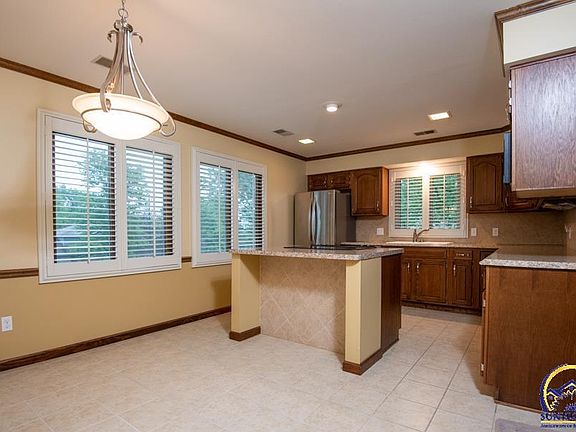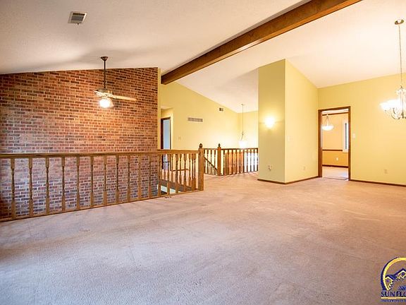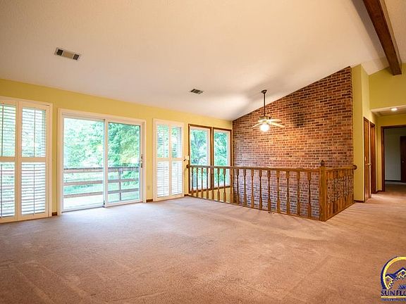 A well "thought out" home design! A big take away of this home is its striking, two-story fireplace that extends from the lower level of the basement up through a custom, railed opening, and meets the living room ceiling. Seller designed the large windows to face the massive brick fireplace to absorb the sun's heat for a solar effect. The home's abundant supply of windows is accompanied by large exterior roller shutters for additional home efficiency. Classic selections made throughout as noted by the classy, neutral ceramic tiled kitchen floor, stainless steel kitchen appliances, Onyx & custom tile in the bathrooms, glass shower doors in the walk in shower, light fixtures, & more. Spacious rooms include the living room-dining room combination, large eat-in kitchen with room for bar stools, & sizable bedrooms (both bedrooms on upper level have walk-in closets). Lower level walks out directly to the patio in the large backyard! Home was recently professionally cleaned as was the carpet! Such a pleasant home! All offers will be presented to seller as received, Seller will review offers 5 pm 5-15-23.