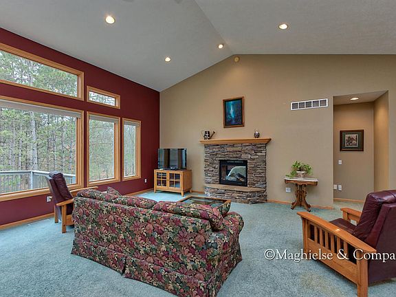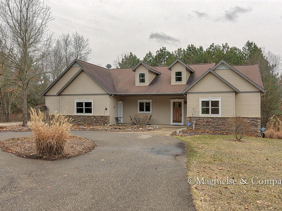 Spacious and spectacular, with cathedral ceilings - you CAN have it all! Open floor plan, huge windows and a ''perfect for entertaining'' deck, you will enjoy nature at its best! Relax, retreat and bask in paradise in this 2.7 acres home. Ideal for entertaining and families, kitchen opens to living area - cook while enjoying your guests! Kitchen island makes preparing and serving easy and inviting! Large pantry and cabinets feature roll out shelves. Natural gas fireplace in living room opens tomaster suite providing warmth and beauty. Master suite is complete with jetted tub, walk-in shower, walk-in closet. Lower level walk out with 3 bedrooms is plumed for central vac and bar. Lots of storage throughout. Shed with cement floor is perfect for outdoor equipment. A must see to appreciate!
