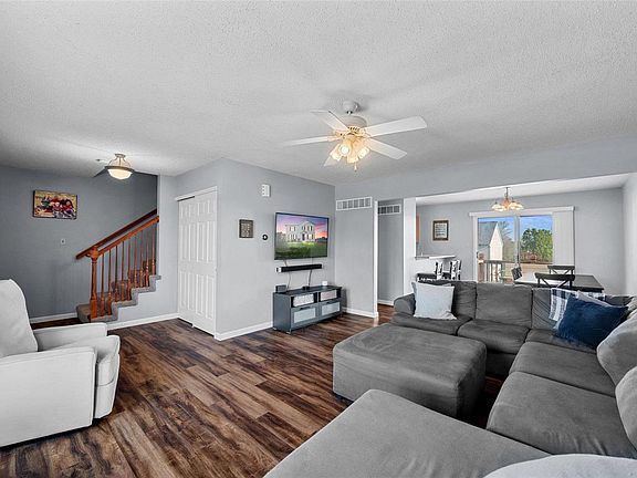 A New Roof will be installed before closing! You will notice the care and love put into this home upon arrival. Enjoy fresh landscaping, a beautiful aggregate driveway, and a large yard overlooked by a deck. Inside is newer luxury vinyl plank flooring and brand new carpeting. An open concept keeps the entertainers happy with a breakfast bar and plenty of room for a big table. Stainless steel appliances stay with the home. All four bedrooms are upstairs including a master suite with double sink and walk-in closet. Don't forget the 2nd story laundry room as well. The basement is finished and currently used as a master bedroom, including its own luxury bathroom and another washer/dryer location. The walkout basement makes an easy retreat to the covered patio with a deck above. Walk to neighborhood pools, schools, and so much more! Basement washer and dryer stay. Kitchen fridge stays. Showings start Friday 4/21/23 at 4:30pm.