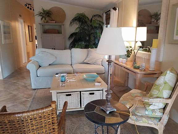 Beautiful 2 bedroom, 2 bathroom "Turn Key" home with private side yard. Walk into the front lanai with French doors leading to a reception/entrance area, then into the living and dining rooms with soft paint tones, and tile flooring on the diagonal throughout living area. Master bedroom has double walk in closets and warm brown laminate flooring. Master bathroom has a large jetted therapeutic tub and separate shower. Inside Laundry, extra large shed/workshop with lots of storage. A Must See! Located in the age qualified community of Ridgewood Estates. Lot rent is $513.