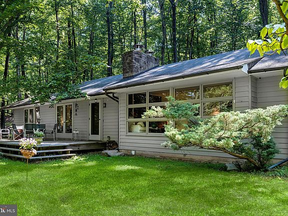 Here's a real Bucks County jewel, with a glistening heated swimming pool in a private hillside setting close to New Hope’s vibrant shops and cafés. Built in 1956 in a Mid-Century Modern architectural style, this really could be your sanctuary offering just the right amount of space without feeling too big. The single-level floor plan features the living room with a commanding stone fireplace and a cast iron wood stove insert and an expansive window wall creates an outdoor connection. Atrium doors here and in the kitchen open to outside spaces that are geared for relaxation including an expansive front deck and an intimate back patio that’s the perfect spot for the grill. There are three bedrooms, a bathroom, and a home office down the hall. The main bedroom and the second bedroom access the outdoors further enhancing this home’s connection with nature. The rear bedroom has a cozy window seat looking out towards the side yard. In the finished lower level, there are spaces for all sorts of hobbies including a backroom workshop plus a craft space. Both the laundry and another full bathroom are handy here. Big windows and timber accents give this home a cool, earthy sort of feel that really seems to embrace its calming surrounds. Move-in and add your improvements over time. In an area chock full of million-dollar homes, this one is filled to the brim with potential! A whole house generator gives peace of mind. Just minutes to the many activities the Delaware River and Canal Path provide and a quick drive into the historic towns along the river, offering incredible dining, entertainment, antiquing, shopping plus, an award winning school system! Many new or recently replaced mechanicals: AC Condenser, Well Pump & Water Tank, Pool Cover/Solar Blanket, Generator, Dishwasher & Washing Machine.