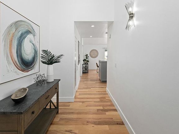 Beautifully remodeled single story home nestled on a quiet cul de sac street in one of Carlsbad's most popular neighborhoods mere minutes to the sand and surf. Featuring 4 BR + an office in a completely private location with nothing behind you but nature. Primary suite is separate from secondary bedrooms & bath. Gorgeous hickory wood floors, remodeled kitchen with quartz countertops & stainless steel appliances + a breakfast bar that seats 4 comfortably. Both bathrooms completely remodeled, new roof, new water heater, new light fixtures & more. Zen landscaping includes paver stone patio at entry with custom orb planters & decorative iron fence. Rear yard features a covered patio with open vistas & more custom orb planters, no maintenance vinyl fencing, newly laid sod plus bonus workshop/shed with private entry. No HOA, No Mello Roos & Walking Distance to Shopping, Dining, Movies & More. Meticulously maintained and move in ready. Your new home awaits.
