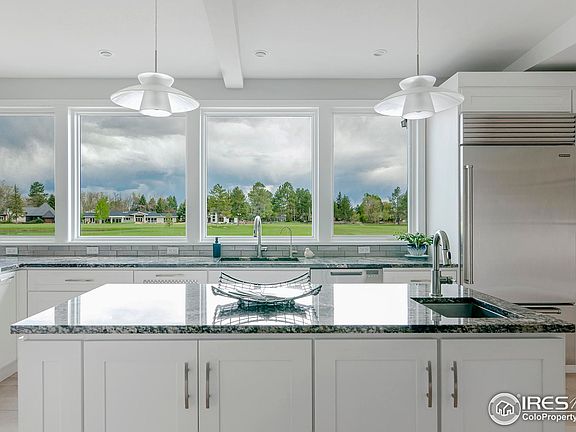 Perfectly situated along the prestigious Boulder Country Club golf course, this fully renovated home offers unobstructed views of the fairways & mountains. With $550K in meticulous upgrades, every detail has been intentionally designed to enhance comfort & livability. Situated on a serene cul-de-sac, this home welcomes you w/ a graceful circular driveway. Step inside the foyer, where impressive custom black walnut & metal stair railings, complemented by maple stair treads, create a memorable first impression. Throughout the home, gleaming maple hardwood floors exude warmth & elegance, while carefully curated designer lighting adds a modern touch. At the heart of the home, the newly renovated kitchen showcases crisp white cabinetry, a spacious center island, & premium Wolf appliances. An expansive wall of windows floods the space w/ natural light & frames stunning golf course & mountain vistas. The kitchen connects effortlessly to the family room, dining room, & living room-each updated with new flooring, lighting, windows, and stylish gas fireplaces.An elegant office with custom built-in bookcases, a pocket door for privacy, & a cozy gas fireplace provides a refined workspace. Nearby, a spacious mudroom & laundry room w/ custom cabinetry add both style & functionality. Upstairs, five bedrooms await. The primary bath has been transformed w/ Carrara marble countertops, exquisite tile, a glass-enclosed shower, premium plumbing fixtures, & indulgent heated floors. A private guest suite, accessible via a separate staircase, includes an adjacent TV room & bathroom, ensuring comfort & privacy perfect for guests.The outdoor living spaces are just as spectacular. A large patio w/ automatic awning, integrated outdoor kitchen & a pass-through bar shelf create the perfect setting for entertaining against a backdrop of breathtaking mountain views.This rare gem combines a serene location, panoramic scenery, & extensive renovations-offering a truly exceptional place to call home.