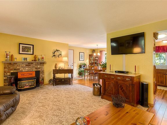 Meticulous rambler on 1.25 acres with an abundance of shops and space. Recent kitchen remodel complete with new appliances, newer paint, new door package, heat pump, gas fireplace and more. Rambler flow naturally with attached 2 car garage +24x30 heated shop with hoist (for 7500 LBS) 12" ceilings, air compressor, lights and work benches. Fenced yard, 1/2 basketball court, RV shed 37x15'6 plus 12x37, chicken coop 8x12, pig pen has water/ power. New vapor barrier, blown-in insulation too.