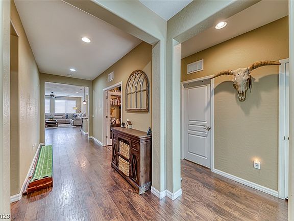 Stunning single story home located in Mountain's Edge. Beautiful open floor plan w/ 3 bedrooms + den w/ built-ins, custom flooring, fresh paint, kitchen open to living/dining area, granite countertops & island, custom cabinets, reverse osmosis, stainless steel appliances, huge master bed & bath w/ separate shower, large walk-in closet w/ built ins, water softener, tankless water heater, and covered patio.