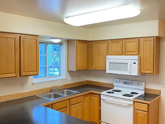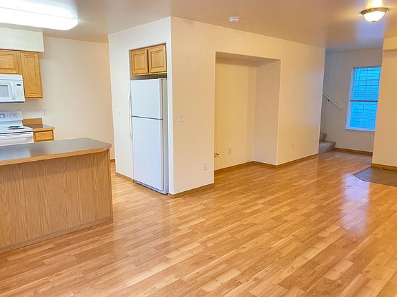 This spacious, modern townhome has 3 bedrooms, 1.5 baths and is located on a quiet street in a nice neighborhood. You can't beat its convenient location which is close to JBER, Tikahtnu Commons and Downtown. The townhouse design means you can enjoy peace and quiet with no one living above or below you. The unit is over 1,200 sf plus a 500 sf garage!! The gourmet kitchen is ideal for any chef! Whether you're having a brunch at the built in bar or just wanting to chat with friends while cooking the perfect dinner. All three bedrooms are located on one floor. The master bedroom has a walk-in closet, vaulted ceilings and is wired for cable. This lay out is ideal for entertaining and keeps your guests out of your personal space. The living room was thoughtfully laid out with an entertainment nook prewired with a cable hook up and outlets that help keep your living space clutter free and inviting. A large East facing window floods the main living area with natural light. The unit comes equipped with a washer and a dryer. There is an over-sized 2-car garage with a spacious storage closet. The garage is large enough to accommodate most pick up trucks. $250 Off Move-in for Active Duty Military Owner pays for water, sewer, trash, landscaping and snow removal. Tenant pays for gas and electric.