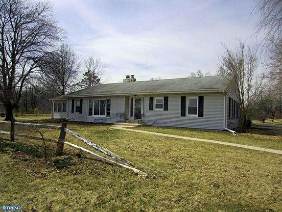 SURROUNDED BY PRESERVED Land in picturesque Plumstead Twp, yet only 10 minutes to Doylestown Borough and 10 minutes to the Delaware River, is a sweet ranch home on 2.5 acres that looks like it has been plucked from California and transported to rural Bucks County. Love to cook? This is the kitchen for you. A 10 foot prep island with expansive commercial cabinetry combined with antique furniture cabinets with granite countertops. This kitchen is so big and thoughtfully laid out that you could give cooking lessons in this kitchen! A large sunny window and bay window give a wonderful view of the wide open backyard. Marble floors are easy to clean. The washer and dryer are in the kitchen as well. How easy to keep control over all of the household tasks and all in one place! The dining room is open to the kitchen and features wood floors and exposed beams. Beyond is the sunroom-a wonderful space for reading, yoga or napping in the sunshine. The living room features more oversized sunny windows, hardwood floors and a woodburning stove surrounded by lovely mosaic tile. The first bedroom has an ensuite bath and is generously sized. The second bedroom is quiet and comfortable. The rear bedroom is open and airy and has a nice sitting area and two picture windows. The second full bath is right outside in the hallway. A full, unfinished basement and attached garage completes the home. Outside is a large 2 car oversized detached garage with storage room above. A work room/office and two bays are on the first floor and the second floor is completely open and great for storage. The acreage is quiet lovely. Peaceful and quiet, the lot is flexible and ready for imaginative uses. $319,000 Call Jay 215-489-8088 MLS #6359043