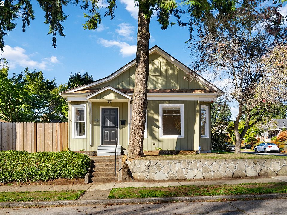 Welcome to your charming 2-bedroom cottage nestled in the heart of the coveted Cathedral Park neighborhood. As you step through the welcoming entryway, you'll be greeted by beautiful laminate flooring that flows seamlessly throughout the home. The updated bathroom features a convenient built-in laundry area, making daily tasks a breeze. Stay comfortable year-round with a two-year-old high-efficiency furnace and AC system. Outside, your very own backyard oasis awaits, complete with a soothing hot tub, a paver patio perfect for al fresco dining, access to the unfinished basement, great for your additional storage needs, and an extra-deep detached garage for all your hobbies. The spacious, fully fenced yard includes a carport and RV parking. Situated on a corner lot, you'll enjoy the convenience of being close to several parks, fantastic dining options, shopping destinations, schools, and easy access to public transportation. Don't miss the opportunity to make this cottage your own piece of paradise! [Home Energy Score = 4. HES Report at https://rpt.greenbuildingregistry.com/hes/OR10215320]
