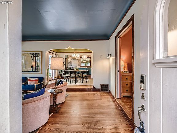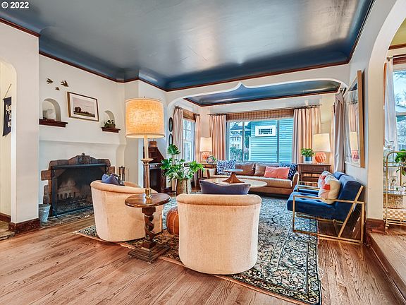 Styled & Dialed! Rich colors, sweet wallpaper, cool light fixtures, coved ceilings, multiple built-ins, hardwoods, tiled baths. Gorgeous custom kitchen with quartz island, high end appliances, breakfast nook. Large living room with fireplace, open formal dining room leads to patio. Bedroom may not be conforming(closet)Huge bonus room upstairs with skylights. Finished lower with family room, fireplace, bath, two bedrooms, high ceilings. **Open Sat 10-1 and offers due by Sat: @ 5 pm** [Home Energy Score = 1. HES Report at https://rpt.greenbuildingregistry.com/hes/OR10207119]