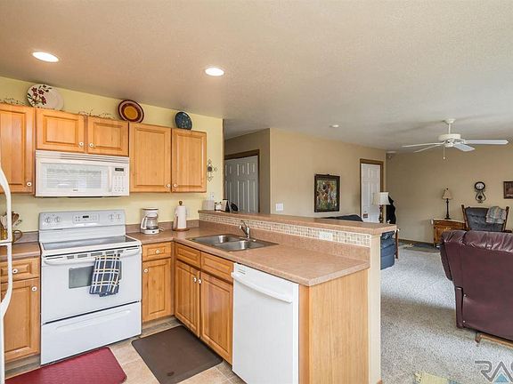 Maintenance Free Condo Living Beautifully Priced in Highly Desired Southwest Sioux Falls! Coveted, quiet GROUND level private CORNER unit with lovely sun-filled living room that walks-out to covered patio & nicely landscaped open space. Considerable kitchen with loads of cabinets for lots of storage, ample counter space, a handy pantry & desirable breakfast bar leads to roomy dining area with large windows allowing for an abundance of natural light & great views. Spacious master bedroom drenched in natural light with walk-in closet plus an additional, sizeable bedroom & a recently updated full bathroom. Single stall detached garage also included. Sought-after location close to schools, parks & restaurants with easy access to all Sioux Falls! HOA includes water & sewer, garbage, lawn care, snow removal, building maintenance & road maintenance.