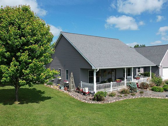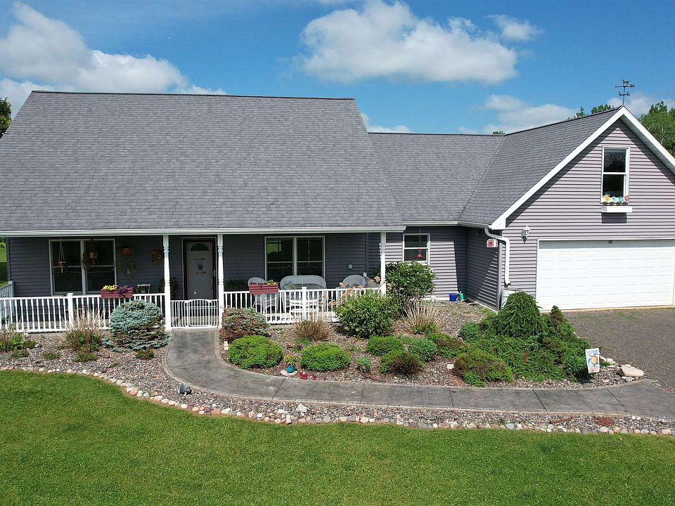 Tucked into 30 picturesque acres, this 2007 Energy Star certified home offers a perfect blend of comfort, efficiency, and natural beauty. Enjoy the serenity of a small creek, a touch of wetlands, and an abundance of local wildlife, all while relaxing in a beautifully manicured yard. Entertain on the large concrete patio, soak in the hot tub on the raised deck, or take a dip in the above-ground pool. The attached 2-car garage and massive 48x70 pole barn—with insulated shop—offer plenty of room for toys, tools, and hobbies. Green thumbs will love the expansive vegetable garden, many flower beds, and a dedicated garden shed. Inside, the open-concept main living space connects the kitchen, dining, and living areas with natural ease. On one side, the private primary suite features a walk-in closet and a spacious bathroom with whirlpool tub and step-in shower, with laundry conveniently nearby. A bonus room with French doors and fiber optic internet provides the perfect home office setup. Two additional bedrooms and a full bath sit at the other end of the home, while the large upper-level flex room offers space for a family gathering room or kid’s playroom. Loaded with energy-efficient features, this all-electric home includes 200 amp service plus 200 amp off-peak service for the 5-ton closed-loop geothermal in-slab heating system, with a 36kW electric boiler for backup, and an 80-gallon water heater—keeping utility bills in check without sacrificing comfort. A rare blend of self-sufficiency, modern comfort, and country charm, just waiting to welcome you home.
