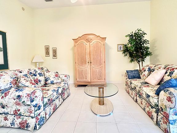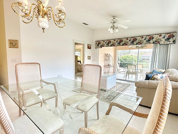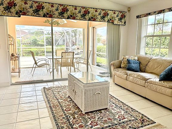 Beautiful, bright and clean as a whistle! This adorable ''Capri'' model sits overlooking the lake, with a huge screened patio, granite counters, tile in the main living areas and accordion shutters. The open floor plan is perfect for entertaining. Both bedrooms are generous in size and have walk in closets and en suite bathrooms (double sinks in the primary bathroom with walk in shower, tub/shower combo in the guest bath). This home is offered fully furnished but is also available unfurnished. There is a large utility room with full size washer, dryer and an extra storage cabinet. The garage has built in cabinets, central vacuum and a security alarm system. This home has only been used part time and is in tip top shape! The heart of this unique residential community is its waterfront Town Center where you can grab lunch or dinner at the on-site "Centanni" Italian restaurant; enjoy the tennis and pickle ball experience on the eight Har-tru lighted courts with on-site tennis instructor and active tennis program. Take a swim in one of the three heated pools, fish from one of the many picturesque bridges; stop by the library, play ping pong or pool. Also located in the Town Center is the full service Illustrated Properties real estate office, beauty salon, mail facility and children's playground. Enjoy 12 miles of scenic pedestrian pathways, take a bike ride or enjoy a vigorous work out in the renovated fitness center or play bocce - all for the exclusive use of River Walk residents! Yoga, mahjong, bridge, aqua aerobics, foreign language classes, crafts and more are some of the other fun activities offered! River Walk offers luxury resort-style living, without extravagant ''country club'' fees! Conveniently located near the turnpike, Palm Beach International Airport, the Outlet Malls, Kravis Center, Downtown, and Palm Beach Island.