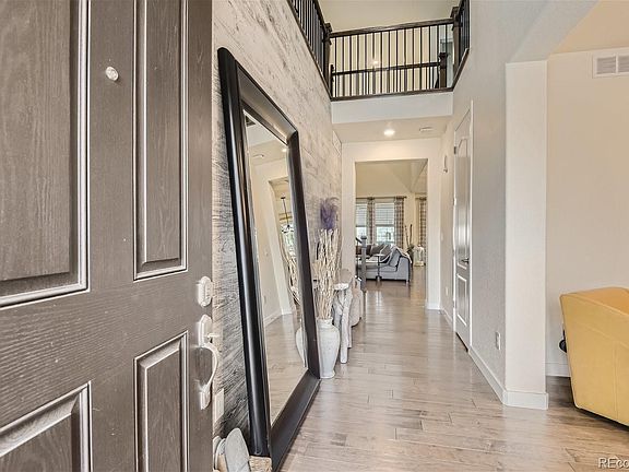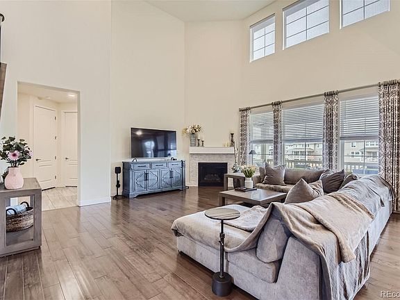 Popular Lennar model offers elegance, comfort and modern living in prestigious Castle Pines. Spacious family room boasts soaring ceilings, windows galore and cozy fireplace. The gourmet kitchen features natural granite countertops, stainless steel appliances, ample cabinet space, large walk-in pantry, and an oversized center island perfect for meal preparation and casual dining. Adjacent to the kitchen, you will find breakfast nook with access to large covered patio, perfect for savoring your morning coffee or hosting barbecues with friends. In addition, main level offers a formal dining room( that was converted to an office), and spacious guest bedroom with full size bathroom. Second floor features luxurious master suite including spacious master bedroom and spa-like ensuite bathroom with dual vanities with makeup space, separate shower with two shower heads, and oversized walk-in closet. Additionally, there are two large bedrooms with separate closets and Jack-n-Jill bathroom with two separate sink spaces. Spacious loft with full size bathroom adds extra comfort and versatility to the second level. This home features professionally finished walk out basement with large bedroom, additional office room, full bathroom with laundry set up for washer and dryer, and luxurious curbless shower. Basement open space includes kitchenette, theater area separated with drapes, dry sauna with built-in bench and extra storage, and custom-made queen-size bunk beds great for relaxation and entertainment. Private backyard backs to open space, featuring xeriscaped, low-maintenance landscape and covered patio area with bar-height fire pit, ideal for spending time outdoors. The expanded paver patio backyard features a built-in bench with round fire pit, surrounded by beautiful lilac bushes and Japanese maple trees. Conveniently situated near Elk Ridge Park, shopping, dining, and top-rated Douglas County schools. This home offers the perfect blend of luxury, comfort, and convenience.