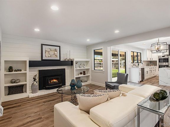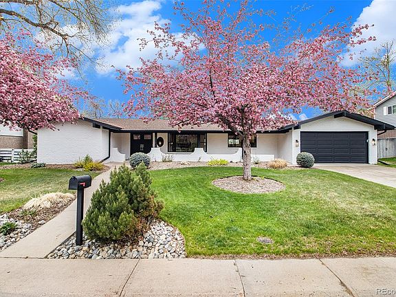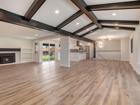 Stunning Modern Farmhouse Renovation in Columbine Knolls. This custom ranch features an Open Concept Floor Plan - perfect for entertaining. Upon entering the home, your eyes will be drawn to the beautiful Vaulted Ceiling with Custom Beams in the Open Living and Dining areas with abundance of natural light. Large eat-in Chef’s Kitchen with high-end SS appliances (Bosch, Thermador, Asko), Large Island with a Waterfall Edge and Ample Storage. Family room has a brick fireplace with wood insert, Custom mantle and Built-ins. Primary Suite has a large walk-in closet with a spa like bath. Main level also provides 3 additional bedrooms and 2 more bathrooms. Laundry on main level. Luxury vinyl flooring throughout the home. Covered front porch and rear patio with cedar ceilings. New Windows, Entry door and Sliding patio door. New High Efficiency Furnace, Air Conditioner and Hot Water Heater. 2 Car Attached Garage with epoxy floors and wired for electric car charger. Large lot with mature landscaping. Extra Parking on the side of the home. Close to Schools, parks, shopping